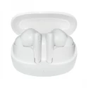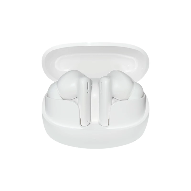 Wireless white Bluetooth earphones compatible with both iOS and Android.
